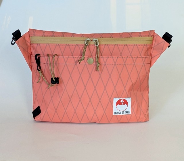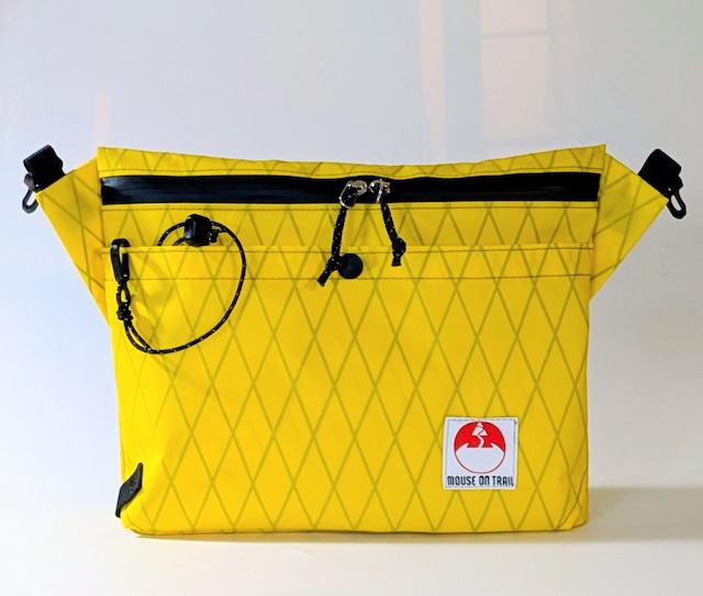 オリジナルで作成しているFanny Pack(ウエストポーチ)です。 シンプルなジップの開口部に特徴的なストレッチメッシュポケットを合わせました。 内部にはモノメッシュを使った仕切りを設けています。 フロントの富士山型のストレッチメッシュポケットは左右からの出し入れが可能であり、また落としにくい構造になっています。スマートフォン、サングラス等ちょっとした小物の収納に便利です。メッシュにはDYNEEMA繊維を使用した非常に耐久性の高いものを使用しています。 デイリーからハイクまで様々なシーンで使いやすいデザインになっています。 (ランニング向けのアイテムではございません) ファスナーの引手コードの色はオプションで変更できます。好みのカラーをチョイスください。 サイズ 23CM×13cm 奥行5cm 容量約1.2L 重量 約67グラム (※使用している生地によって変わります) DCF生地はシワが発生しやすく、生地の縮も起こりやすいものになります。ご了承ください。 価格は使用している生地によって変わります。 予告なしに新しいカラーなどが追加されることがあります。