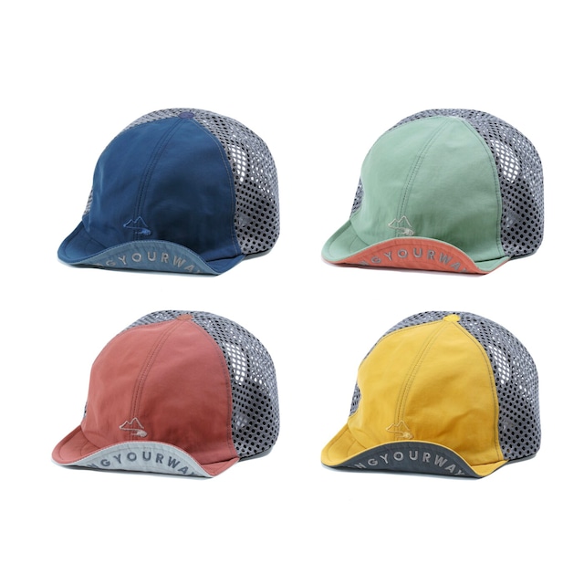 通気性、被り心地を追求したmilestone original capシリーズ。 その中でも通気性の高いメッシュパネルの多いモデルとなります。 帽子のツバにワイヤーが組み込まれている為、好きな形状を記憶する事が出来ます。 そのためヘッドライトとの相性も良いです BODY NYLON 100% / MESH:POLYESTER 100% / SIZE:約56.5〜59.5cm SIZE ワンサイズ (フリー)
