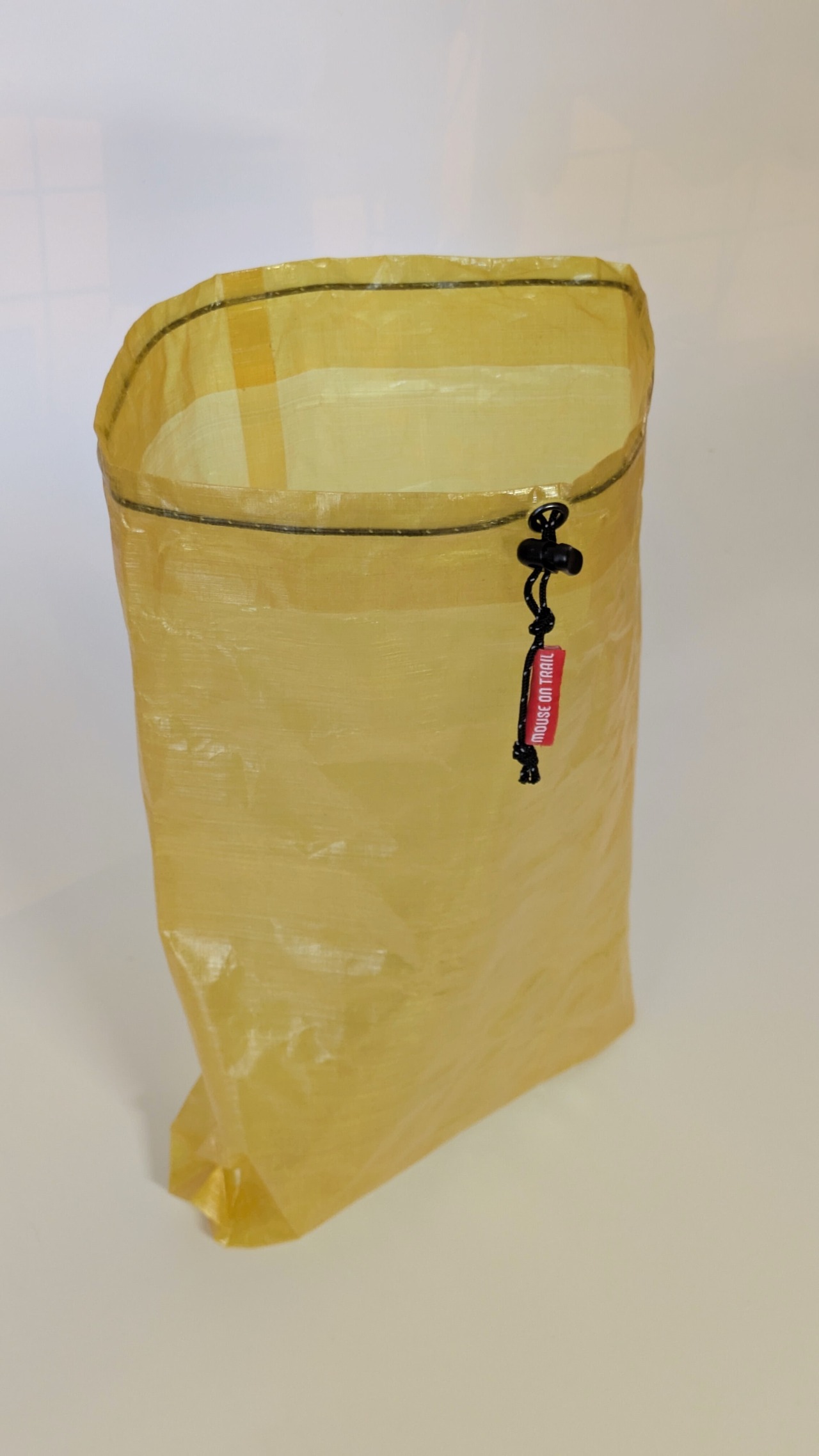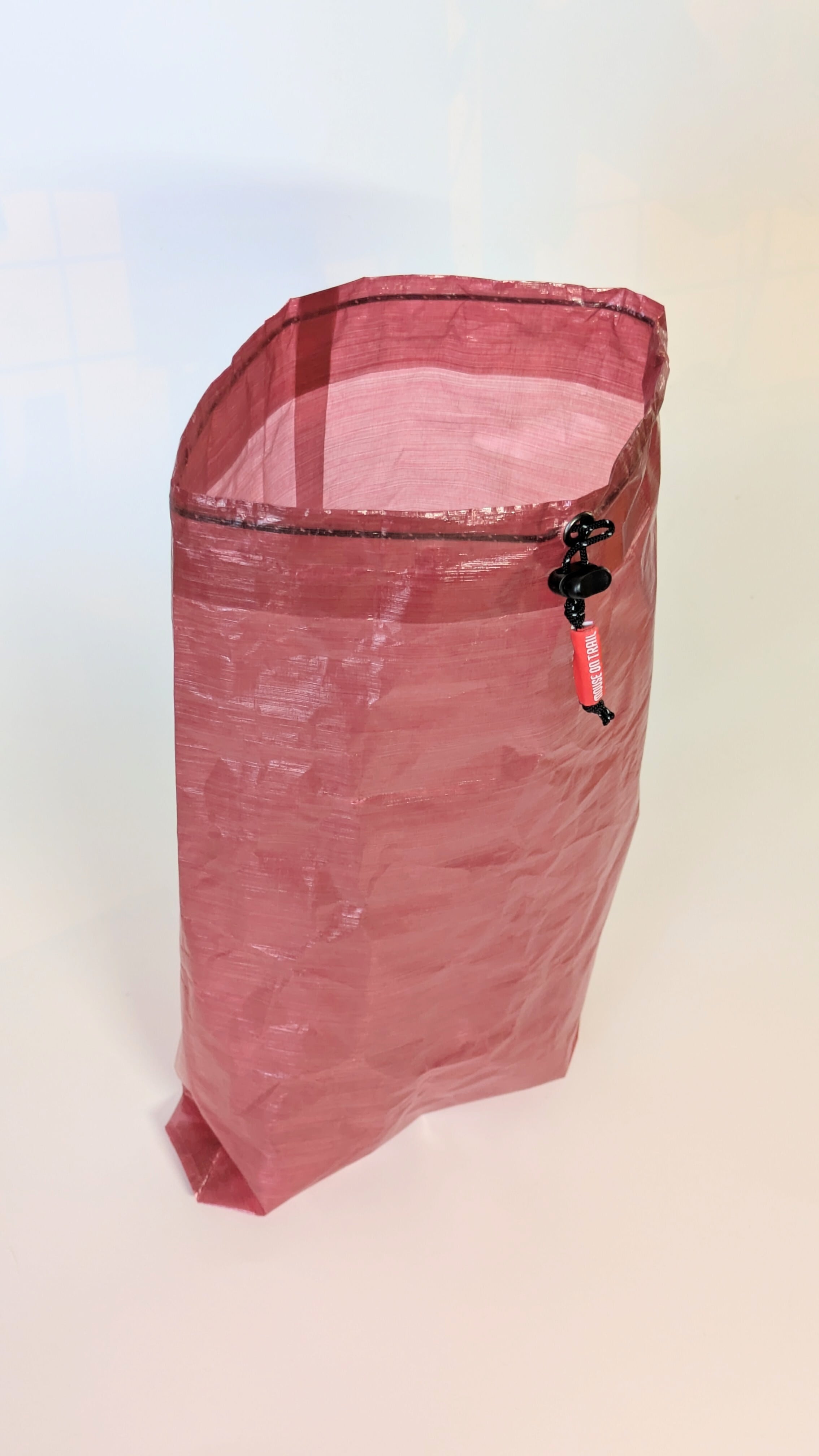 巾着タイプのデザインにより、開口部からの水の侵入は避けられませんが、バックパックに収納する際に向きに注意すれば、内容物を乾いた状態に保つことができます。