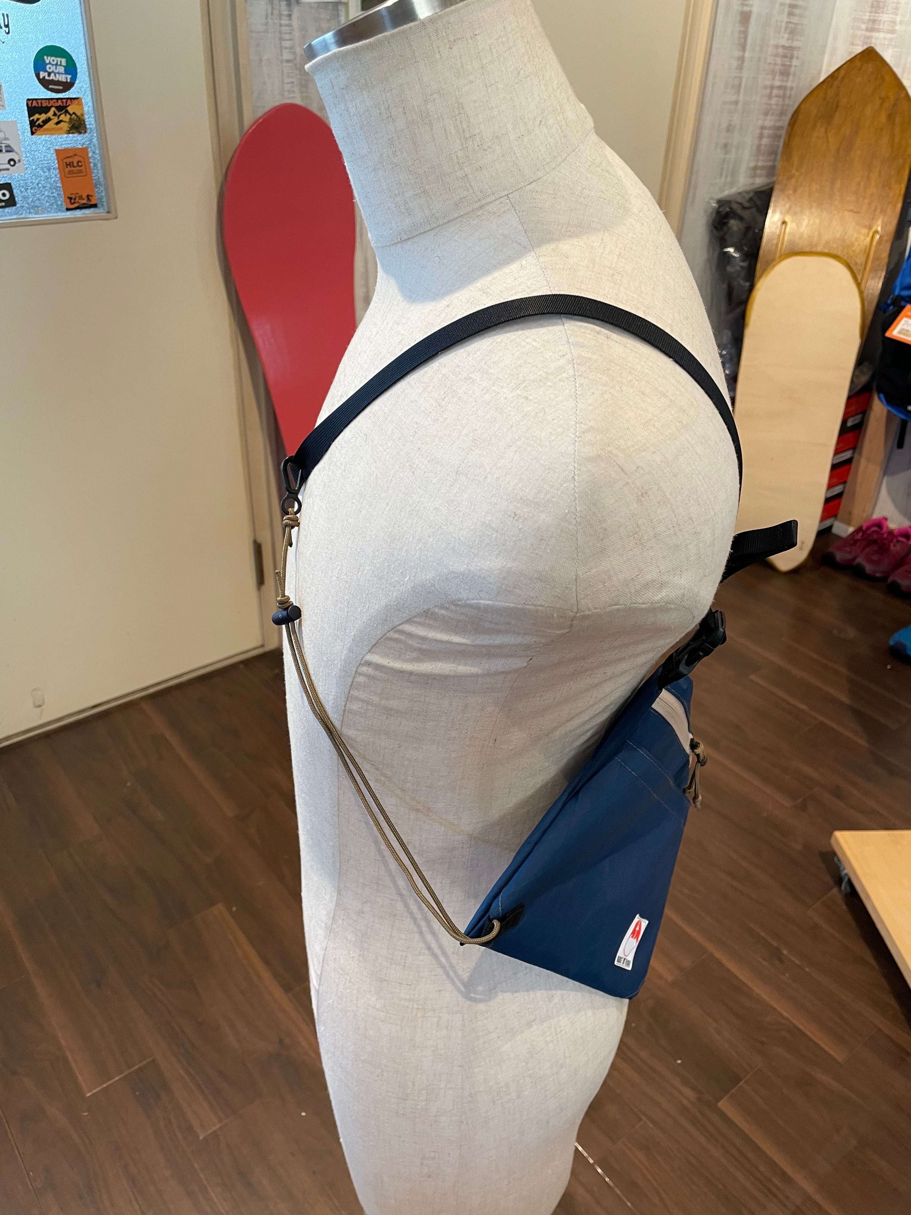 普段は前ポケットに隠れているサブストラップですが前に引き出し胸元にかけることにより三点で固定することができるようになります。体に自然にフィットするので最低限のものをもって走りたいときなどにとても便利です。
