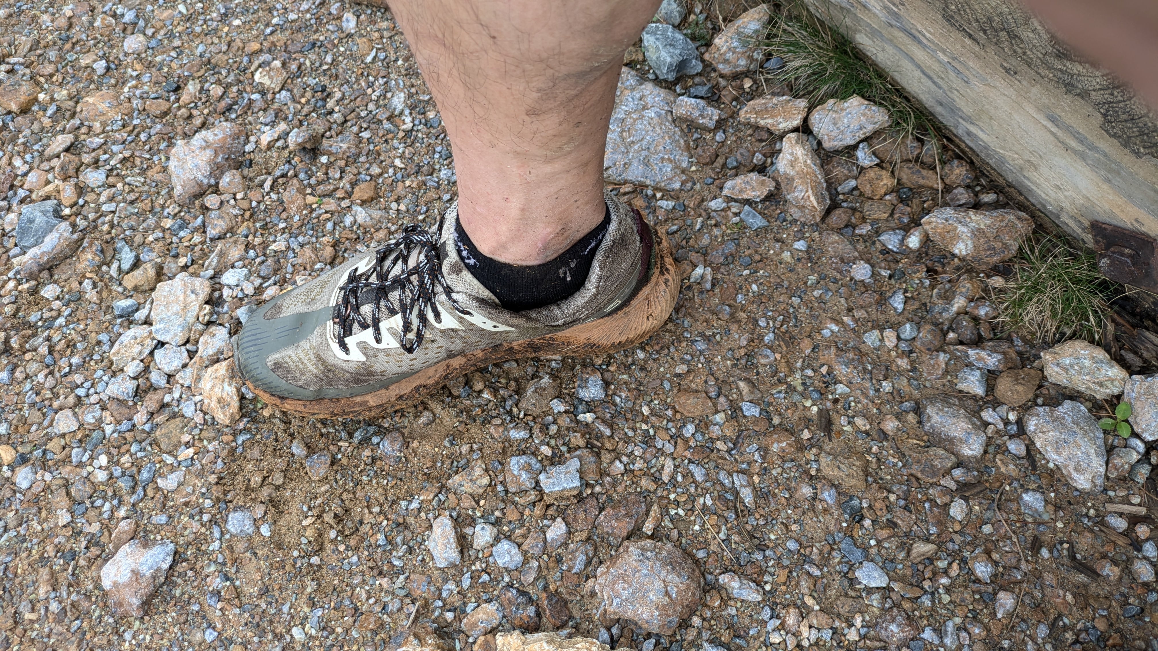 北アルプス3泊4日で使用しましたが安定感もあり安心して使用出来ました。足首周りはザラついた素材なのでショートソックスはお勧めしません。