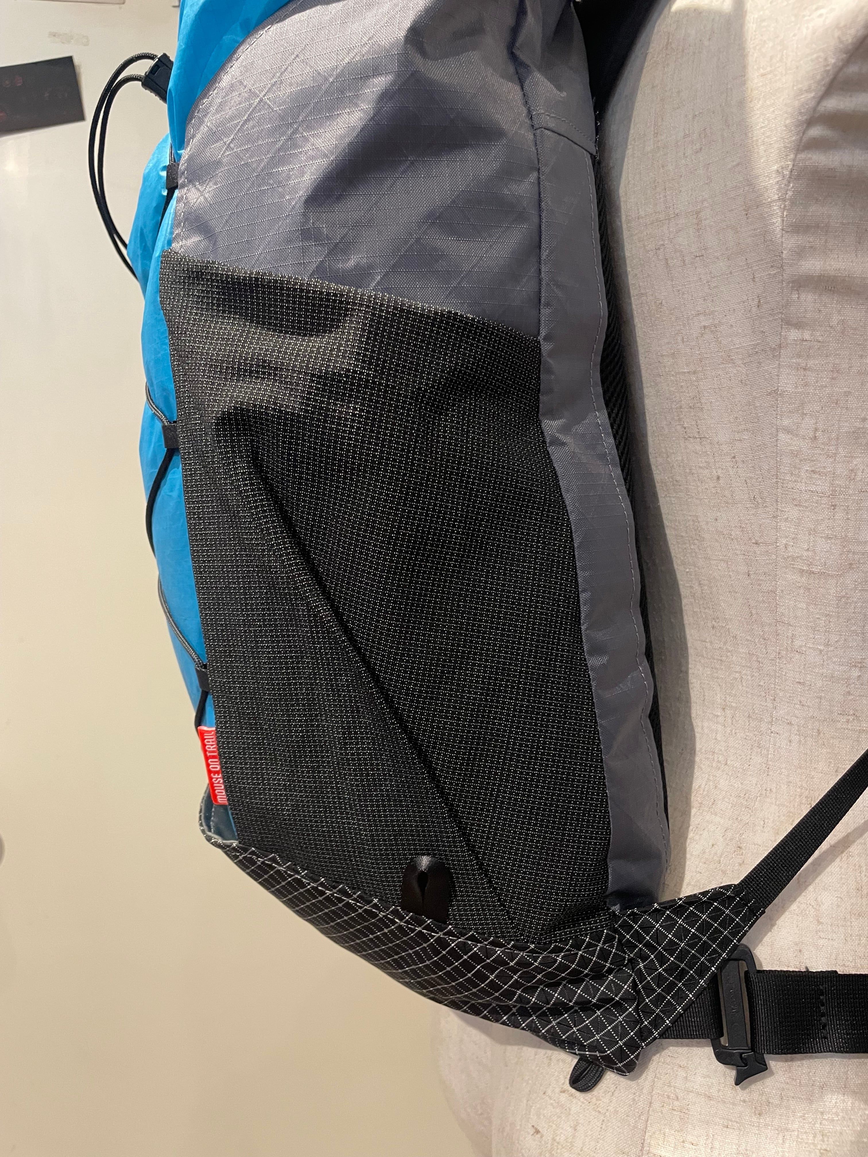 サイドポケットはストレッチメッシュの中でも非常に耐久性の高いベノムストレッチメッシュを採用しています。またコードの余った先端はこちらに収納ください