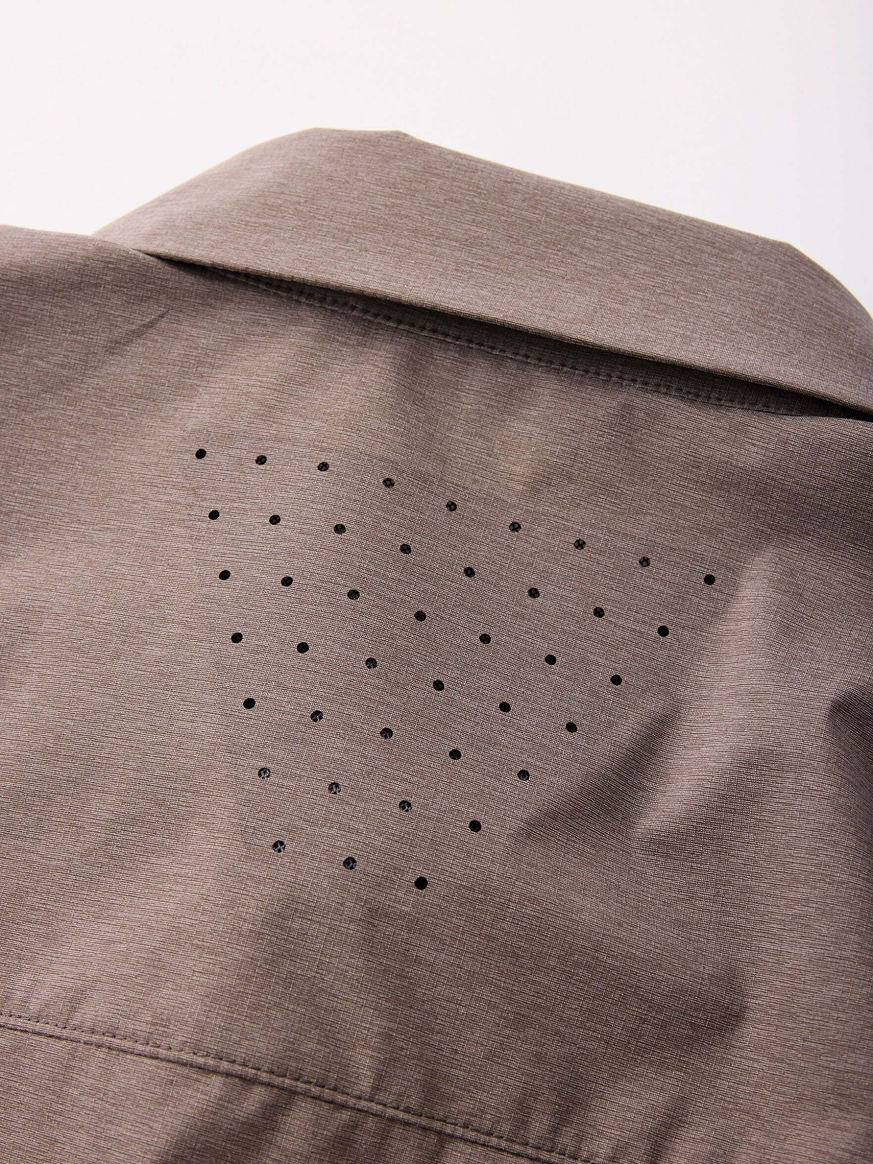 「PERTEX EQUILIBRIUM」を採用した走る人のためのシャツです。 糸と織り密度をTETON BROS.独自に調整したこの素材は、耐久性や速乾性、発汗時の肌離れが良いのが特長。接触冷感のあるナイロンを使用しているので、夏の高強度なアクティビティにもぴったり。スナップボタンを外せば風が抜けるので、暑い日も快適に着られます。背面の首元にはベンチレーションホールを配置。