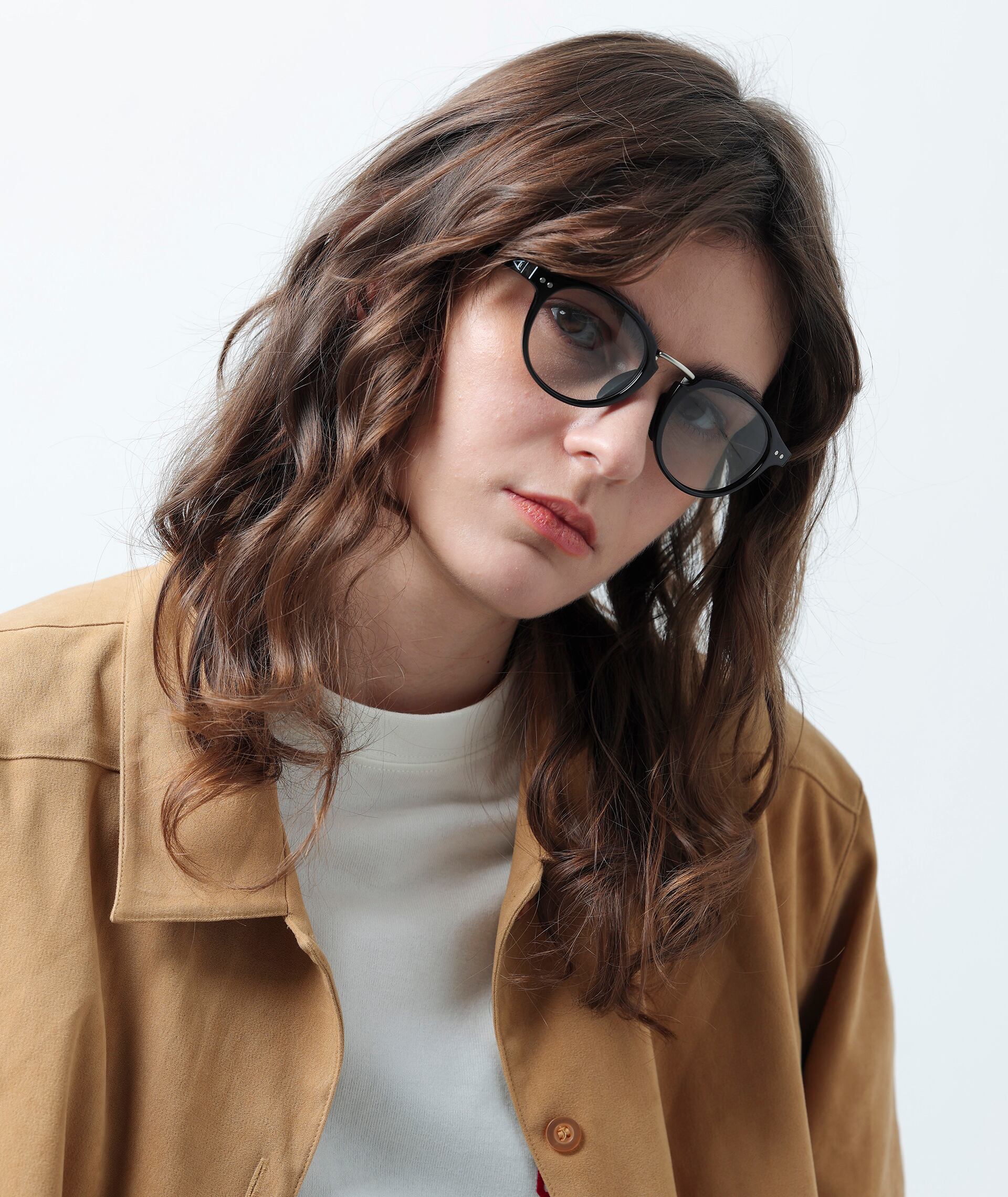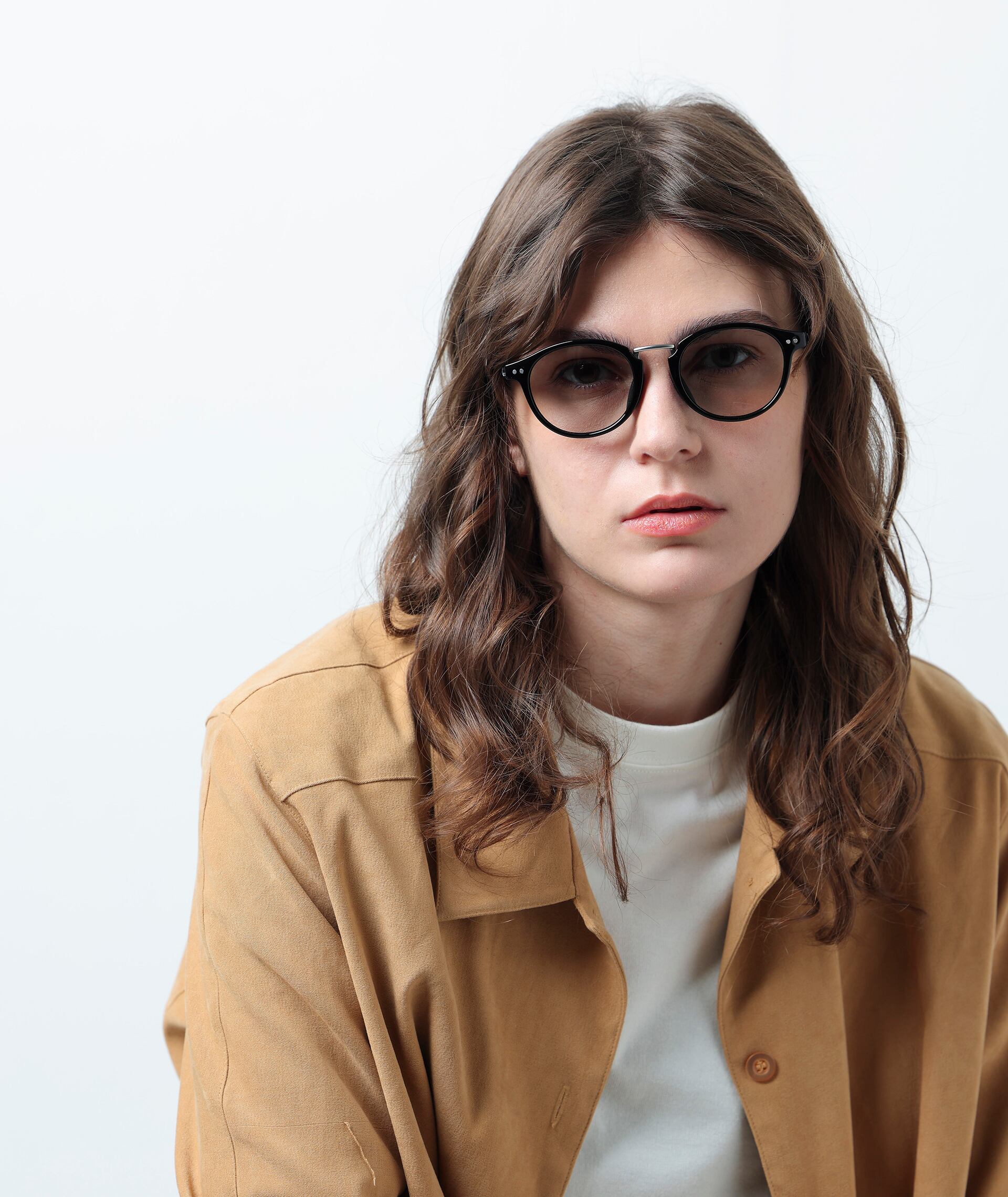 フレーム全体をスリムに仕上げることで見た目、着用感ともに軽快さを感じられるがメタルのカシメ(ドット鋲)でクラシックさも演出されている