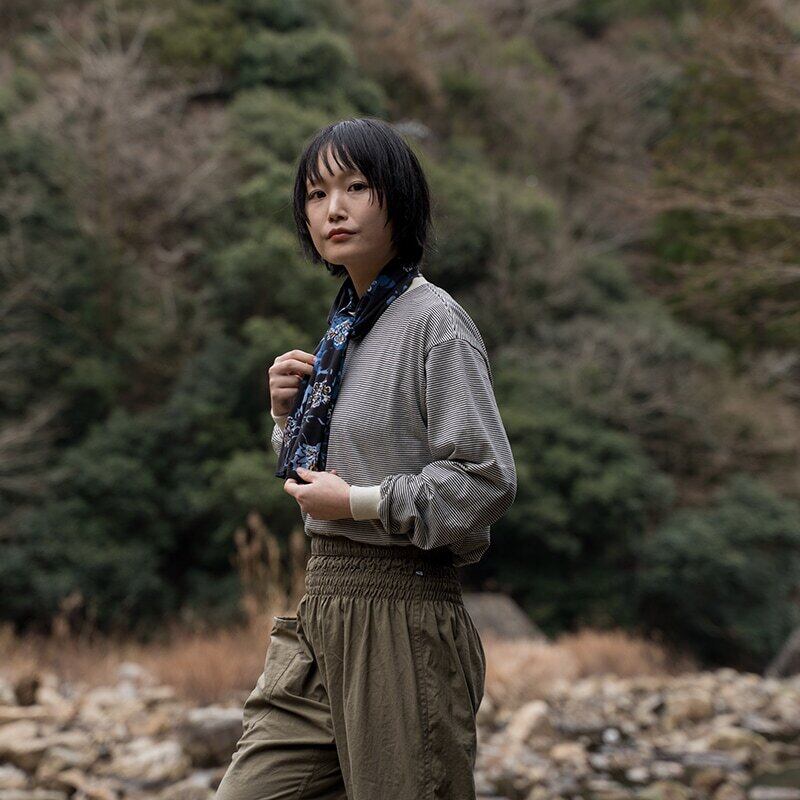 ⑥スポーティーな細身な生地巾で110cmと長いので、頭に巻いても、首にかけてもちょうどいいサイズ感!