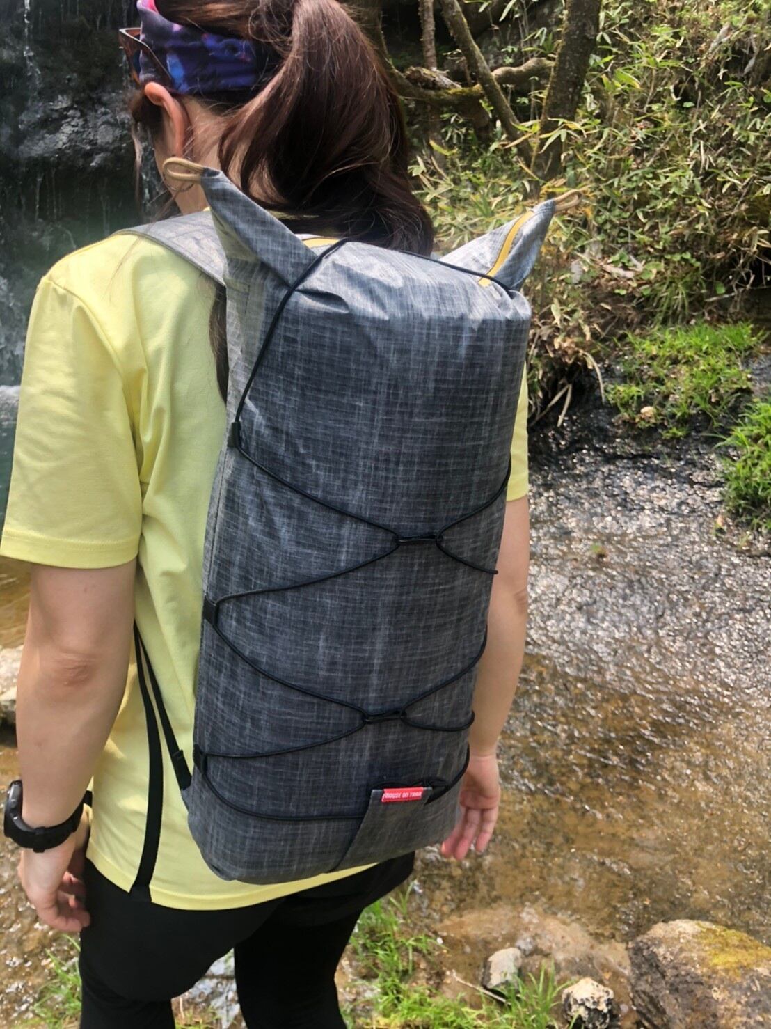 こちらのバックパックはシンプルな筒形の小ぶりなザックとなっています。パッドもついていないシンプルな構造ですがマット等を丸めて中に入れることによってザックの形を保つことが出来るようになります。