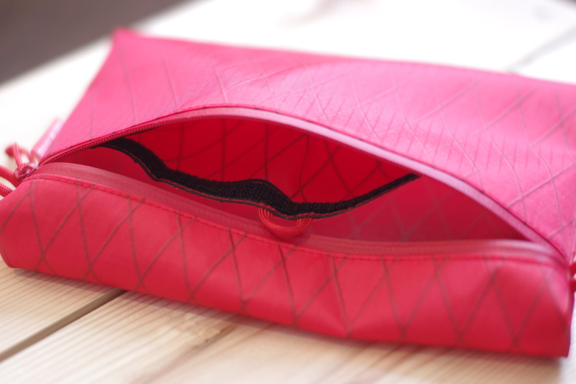 内部には小物収納用のポケットが付いていてなくしやすい小物を収納できます。入口はマジックテープで開閉でき指のかかりやすい取っ手もついてとっても使いやすくなっています。