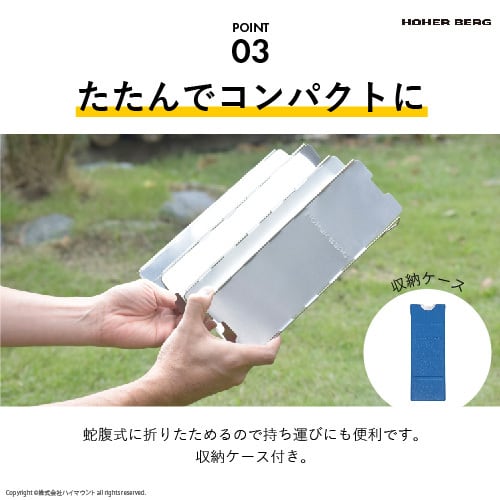 ウインドスクリーンは屋外でのバーナー使用時に風などから炎を守ります。