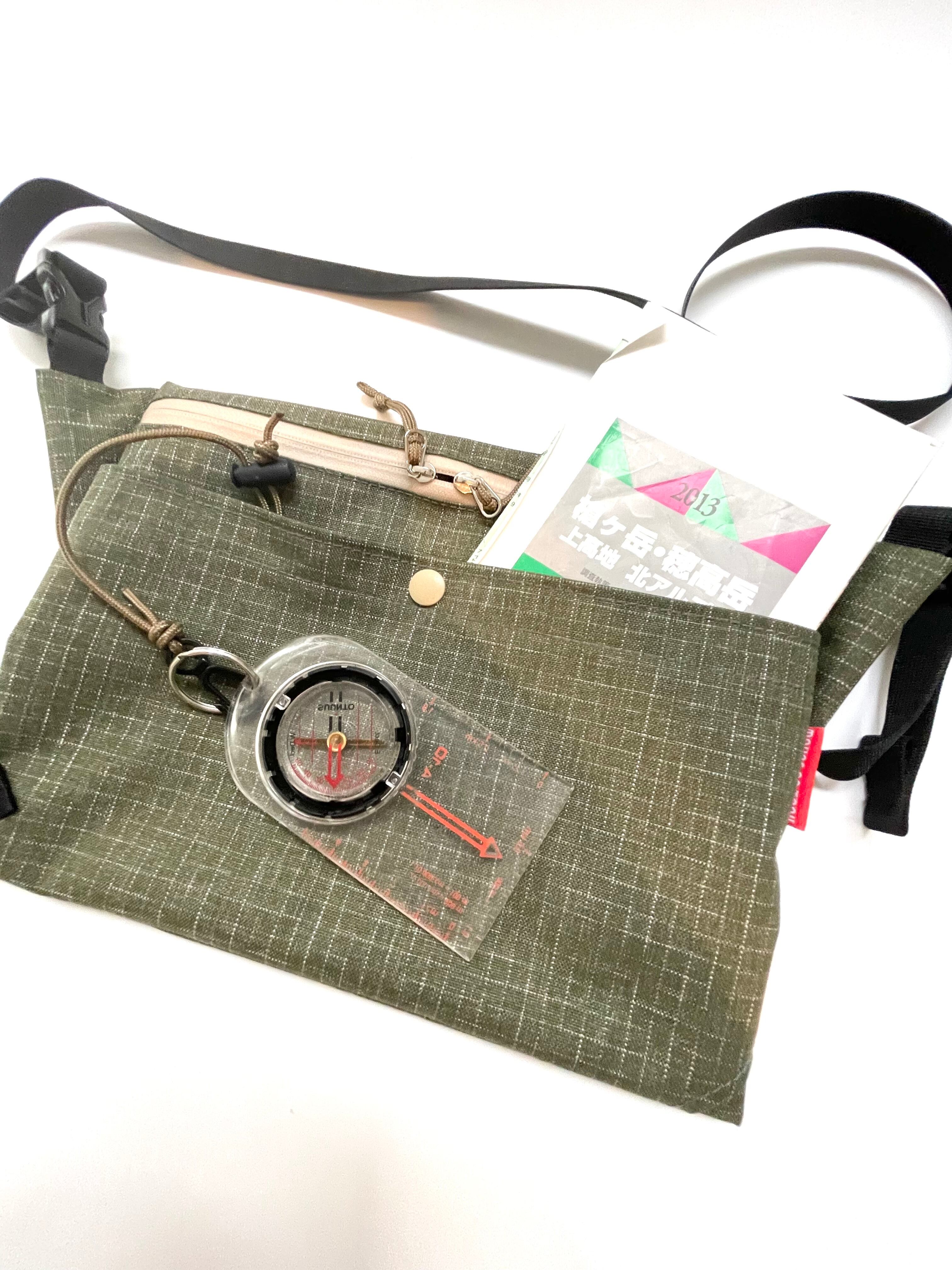 走れるサコッシュ cheek pouch スパイダロン Olive×beige