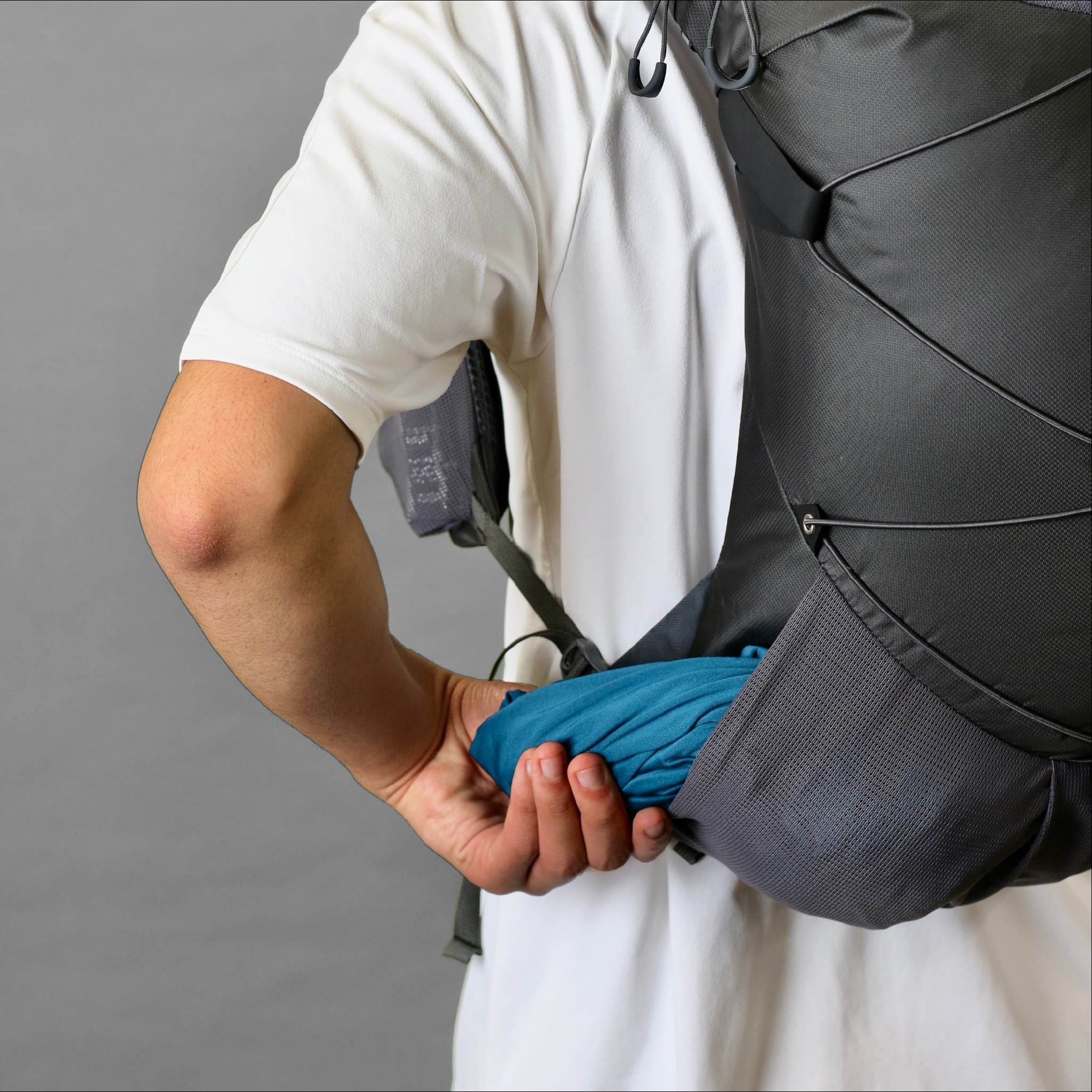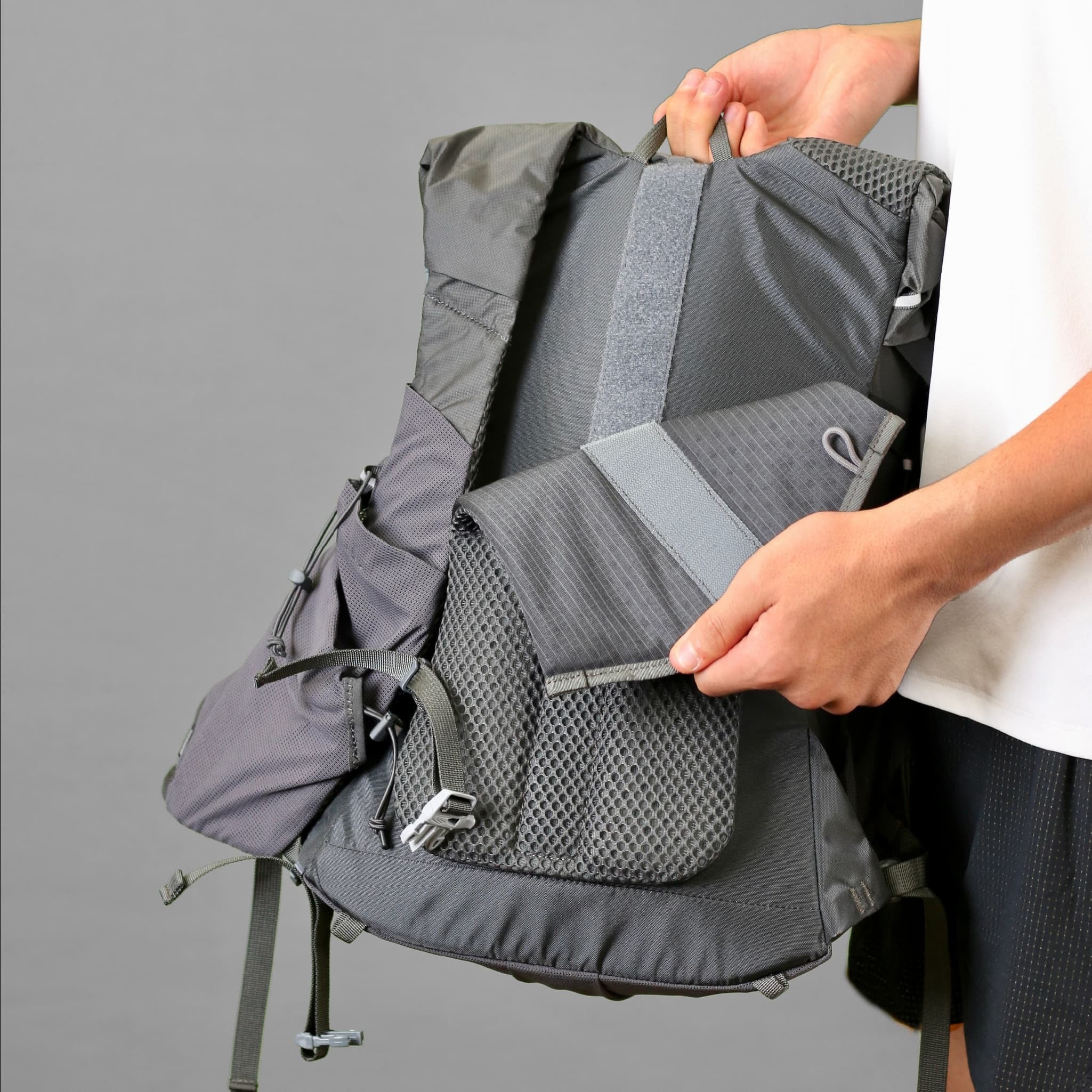 高重心設計+ショルダーポケットを備えたアクティブなデイパック。トレイルランニングのみならず、日帰りハイク、軽量装備でのオーバーナイトまで、遊びの枠を広げる柔軟さが特徴です。