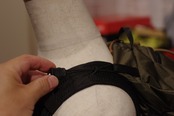 ショルダーの取り付けも独自のカッティングを施しています。パックが膨らんでもフィット感が損なわれず肩のの動き、腕振りにもスムースにできるオリジナルのものになります。